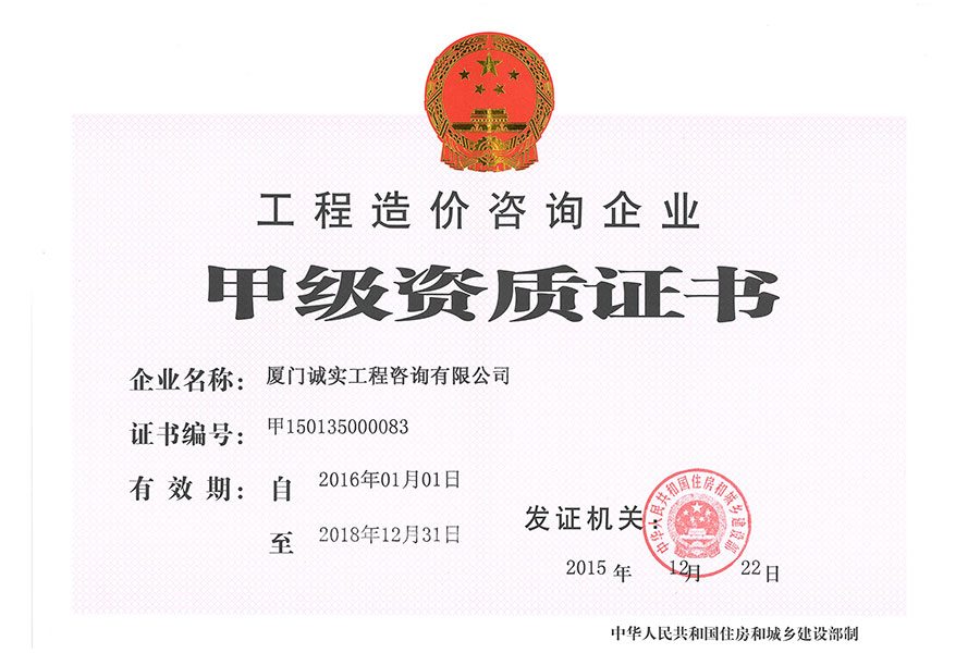 工程造價(jià)資質(zhì)正本(2016版)