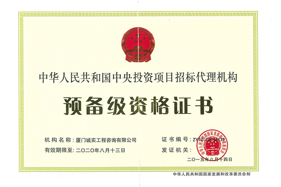 中央投資招標(biāo)代理資質(zhì)證書正本